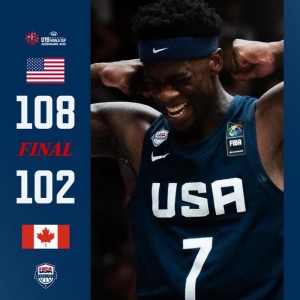 美国U19男篮108-102险胜加拿大U19男篮晋级半决赛,这场比赛美国队与加拿大队打得非常胶着,上半场打完美国领先7分...