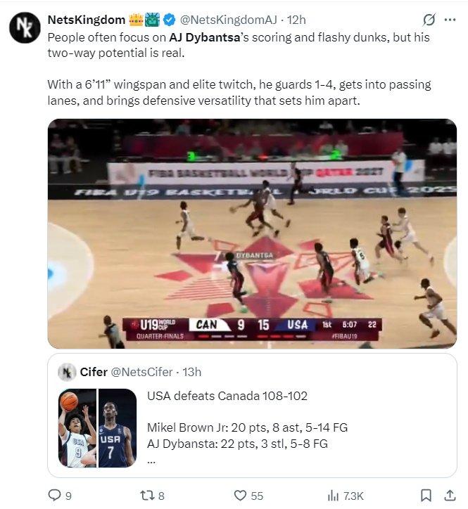 迪班萨这场最强一战引来美媒的盛赞:迪班萨在高中联赛上半场进攻又战术存在巨大有优势,来到U19表现有些混乱主要依靠快攻、造犯规拿分,不过他在低位借掩护顺下攻框的效果很好。